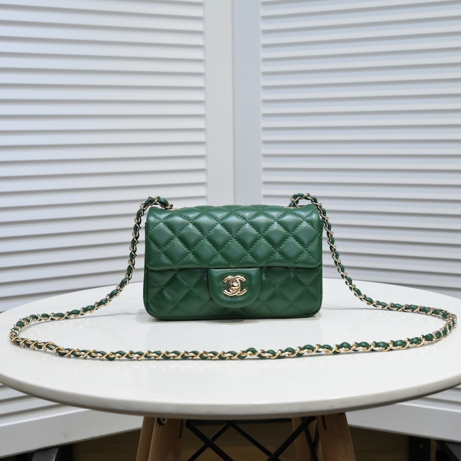 Chanel Lamb skin chain crossbody bag green 1116 SIZE: 20*14*7cm