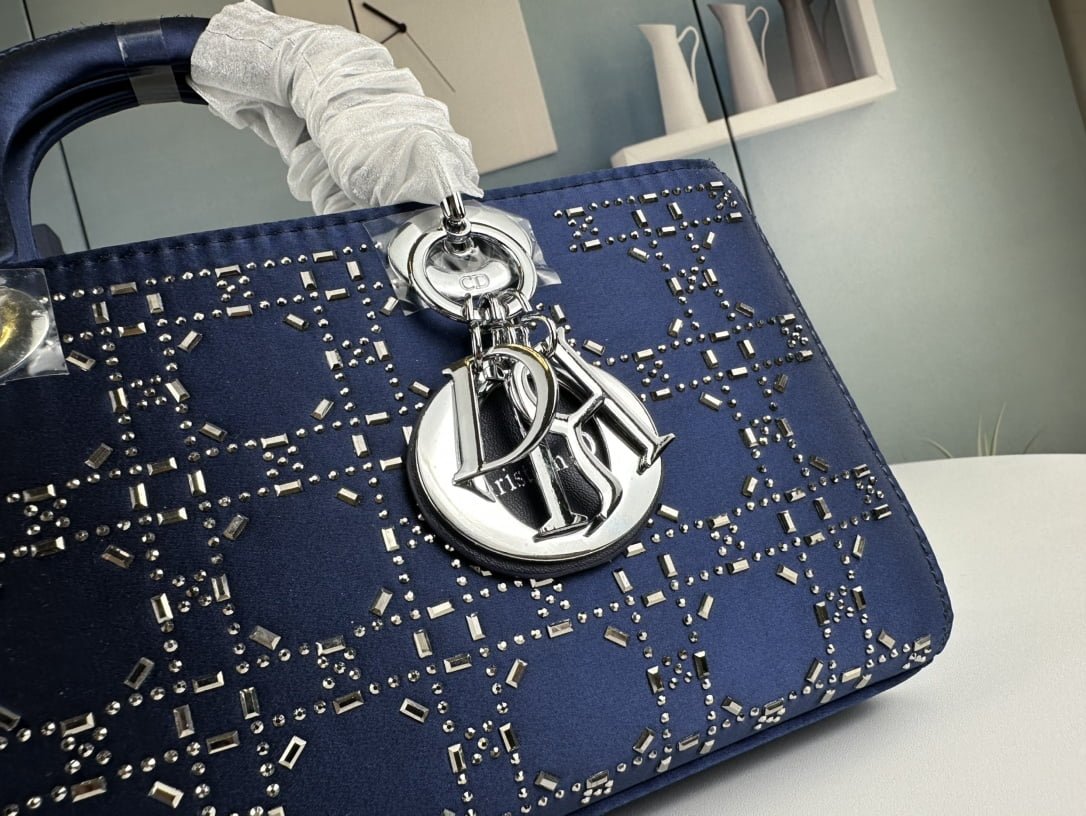 Horizontal hot diamond Dior@Satin diamonded Diana bag 💗 silk flashes different colors under different angles of light 😘, the three-dimensional sense of the transition of light and dark makes the satin a higher grade 💫 ubiquitous exposure rate, Internet celebrity hand a 🎀 size 26x13x6, model No. 2320