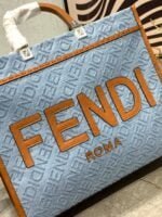 fendi sunshine Medium tote bag, decorated with fendi mirror pattern. Hard brown leather handle with fendi roma inscription. Features spacious lined internal compartments, imported leather contours and gold-finished metal pieces. Equipped with two handles and detachable shoulder strap, it can be carried on or over the shoulder. Size: 353117