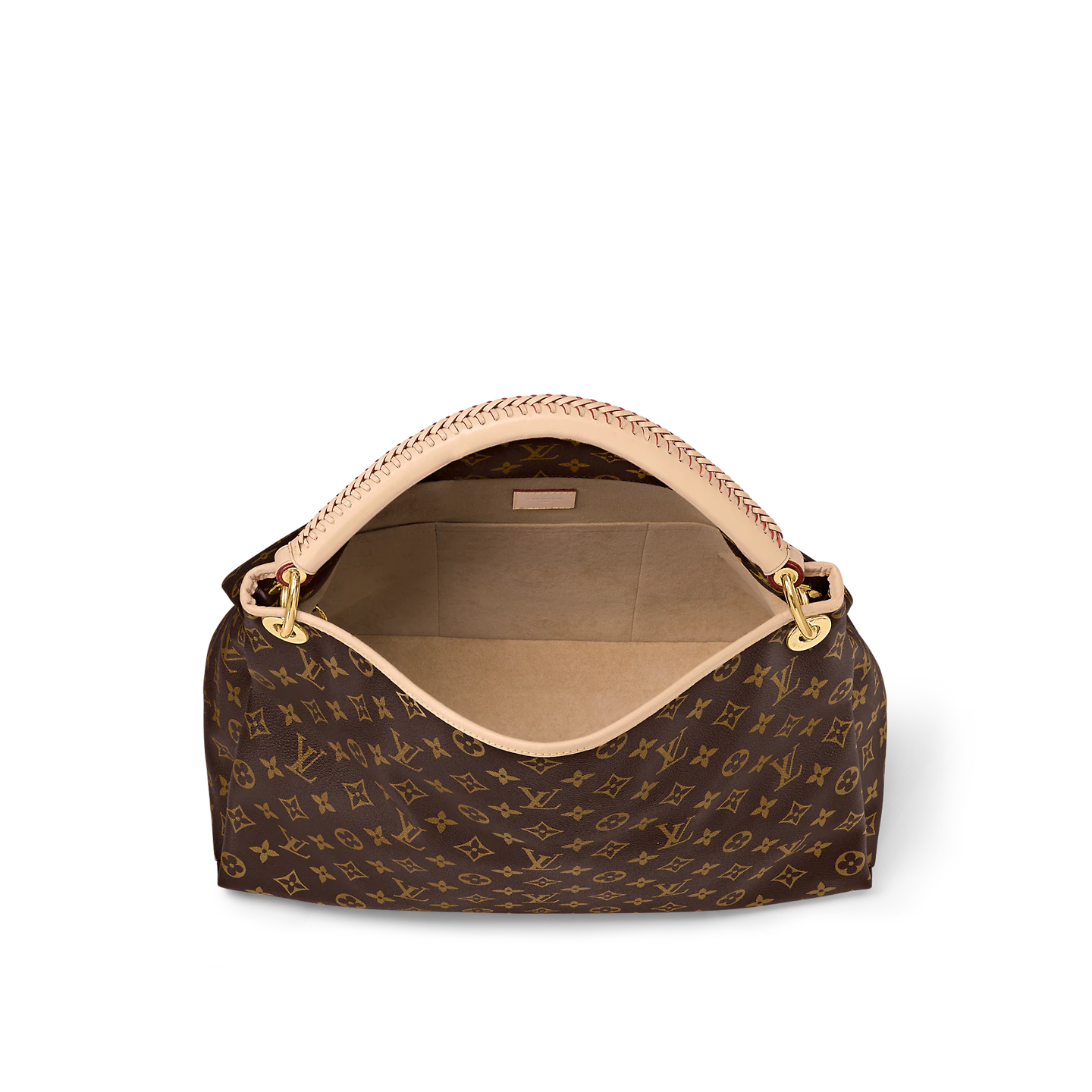 The Artsy MM embodies understated bohemian style. Louis Vuitton’s iconic and divinely supple Monogram canvas is enhanced by rich golden color metallic pieces and an exquisite handcrafted leather handle.