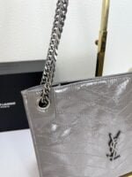 NIKI Shopping Bag Pleated Vintage Oil waxed leather Saint Laurent Tote Bag Upholstered leather-covered YSL initial shoulder Bag 100% calfskin Antique Silver Metal hardware Rolework lining magnetic buckle inside with a zipper pocket