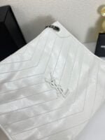 NIKI Shopping Bag Pleated Vintage Oil waxed leather Saint Laurent Tote Bag Upholstered leather-covered YSL initial shoulder Bag 100% calfskin Antique Silver Metal hardware Rolework lining magnetic buckle inside with a zipper pocket